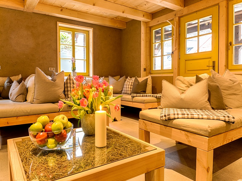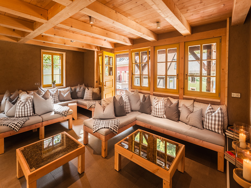Bei der liebevollen Sanierung des Badehauses haben wir auf Ganzheitlichkeit und Baubiologie geachtet – die Wände sind mit Lehm, gehäckseltem Heu und Quark verputzt, die heimischen Hölzer wurden nur geseift, so dass der herrliche Duft nach Holz voll und ganz entspannend wirkt. Ein Sauna-Aufguss aus rein ätherischen Bio-Ölen macht jeden Sauna-Gang zum Genuss. Das Edelsteinwasser sorgt dafür, dass Sie ausreichend trinken können und so Ihren Wasserhaushalt im Körper im Gleichgewicht halten. Die Panorama-Sauna lockt mit ihrem herrlichen Blick auf den malerischen Mühlenhof. Genießen Sie unsere Finnische Sauna (90°C) oder erholen Sie sich in unserer Bio-Sauna (65-70°C).